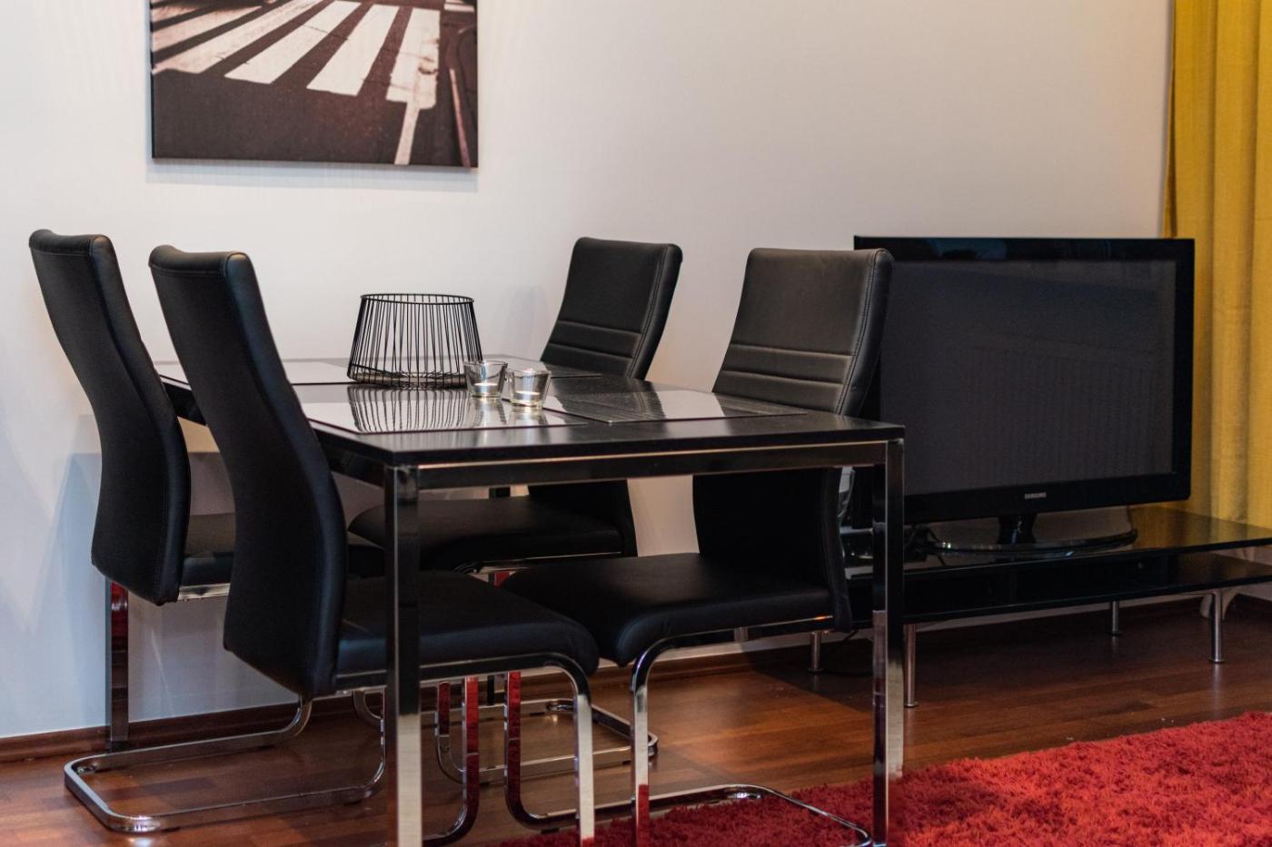 Apartament z 1 sypialnią. This apartment comes with a kitchen, a seating area, 1 separate bedroom and 1 bathroom with a bath and a shower. In the fully equipped kitchen, guests will find a stovetop, a dishwasher, kitchenware and an oven. The apartment features a washing machine, a tea and coffee maker, a dining area, a flat-screen TV, as well as ancourtyard view. The unit has 1 bed. Apartament - 4 osobowy. Powierzchnia pokoju ok.: 40 mkw.